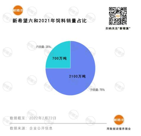 時(shí)至今日,內(nèi)銷已成為新希望六和飼料的重要渠道。據(jù)公告信息,2021年新希望六和飼料銷量2800萬噸中,其中內(nèi)銷量700萬噸,占總銷量的25%。