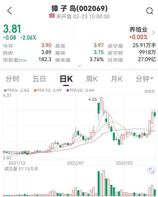 盤面上,周一獐子島強(qiáng)勢漲停,本周三個(gè)交易日累計(jì)上漲13.4%。