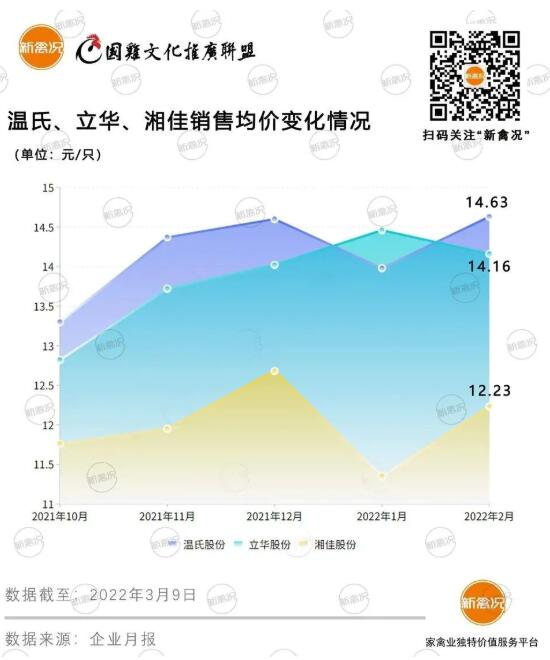 與2021年相比,企業(yè)2月份的銷量變動并不明顯。其中,銷量變動幅度最大的是湘佳,同比減少11.12%;立華、溫氏2月銷售量小幅下跌,同比分別減少8.13%、6.47%。