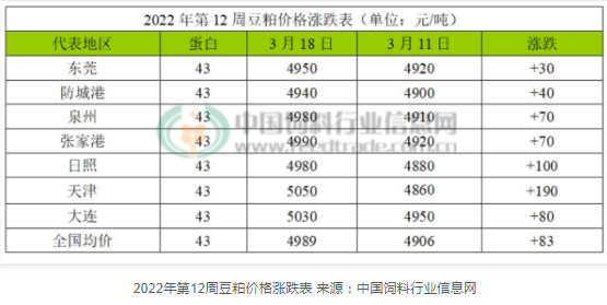 根據(jù)中國(guó)飼料行業(yè)信息網(wǎng)的統(tǒng)計(jì)數(shù)據(jù),今年3月,由于豆粕價(jià)格上漲,各地生豬飼料的價(jià)格已經(jīng)比去年同期每噸上漲了300到1000元。