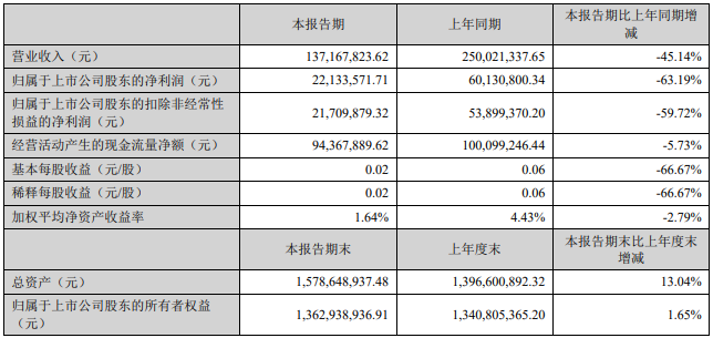 金字火腿4月19日公布2022年一季度報(bào)告。報(bào)告期內(nèi)公司實(shí)現(xiàn)的營業(yè)收入約為1.37億元,同比下降45.14%;對(duì)應(yīng)實(shí)現(xiàn)的歸屬凈利潤約為2213.36萬元,同比下降63.19%。