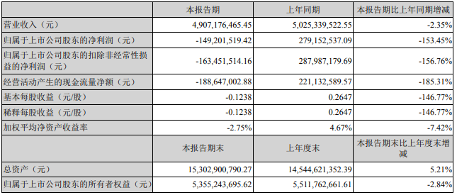 唐人神4月28日晚間披露第一季度報(bào)告,報(bào)告期內(nèi),公司實(shí)現(xiàn)營業(yè)收入49.07億元,同比下降2.35%;凈利潤虧損1.49億元,上年同期盈利2.79億元。