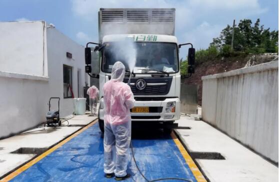 ☉工作人員正在對車輛消毒