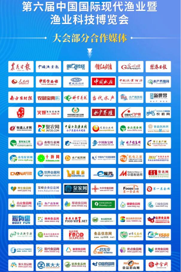 第六屆中國國際現(xiàn)代漁業(yè)暨漁業(yè)科技博覽會,已邀請173家(目標(biāo)300家)社會主流媒體、漁業(yè)專業(yè)媒體、會展垂直媒體,分別對本屆大會展前、展中、展后進(jìn)行專題報道,助威造勢。