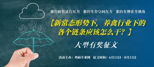 為此,雞病專業(yè)網(wǎng)站在行業(yè)發(fā)展角度推出【新常態(tài)形勢(shì)下養(yǎng)禽行業(yè)下的各鏈條應(yīng)該怎么干?】大型有獎(jiǎng)?wù)魑幕顒?dòng)!