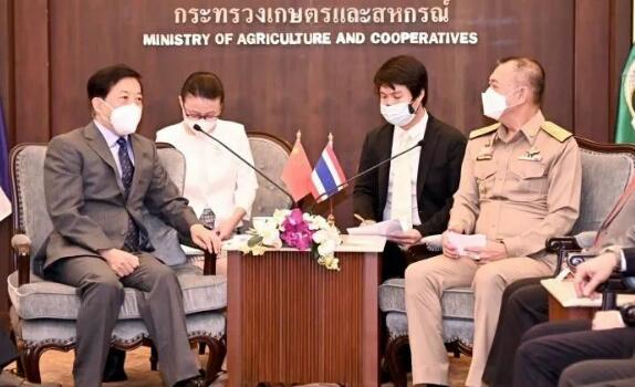 中國駐泰大使韓志強(左)與泰國農(nóng)合社部長察霖猜(右)