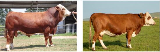 華西牛與國外肉用西門塔爾牛的對(duì)比圖。中國農(nóng)科院供圖