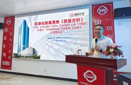 和平通威總經(jīng)理衛(wèi)星、海陽通威副總經(jīng)理何正國對公司標(biāo)準(zhǔn)化一階段工作進(jìn)行匯報。并對標(biāo)準(zhǔn)化項目組給予的大力指導(dǎo)與支持表示衷心的感謝,表示標(biāo)準(zhǔn)化工作驗收通過只是起點,后續(xù)常態(tài)化才是重點,要求公司全體人員認(rèn)真整改,將標(biāo)準(zhǔn)化工作常態(tài)化。公司將深度貫徹落實標(biāo)準(zhǔn)化點檢工作,讓“標(biāo)準(zhǔn)化”從清掃、清潔到提升全員的素養(yǎng),同時把建設(shè)標(biāo)準(zhǔn)化的精神運(yùn)用到公司經(jīng)營工作的其他方面,最終實現(xiàn)公司的各項經(jīng)營指標(biāo)提升。