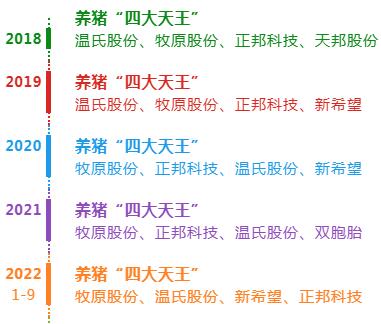 2018年8月,中國暴發(fā)非洲豬瘟,并引發(fā)國內(nèi)生豬養(yǎng)殖格局的重塑。一方面,“豬王”易位。以生豬出欄量來看,溫氏股份久居行業(yè)首位,持續(xù)發(fā)力的牧原股份2020年成功上位,成為新任“豬王”;另一方面,養(yǎng)豬業(yè)內(nèi)的“四大天王”,也由“溫牧正天(溫氏股份、牧原股份、正邦科技、天邦股份)”演變?yōu)椤皽啬琳?溫氏股份、牧原股份、正邦科技、新希望)”(2019年),又演變?yōu)椤澳琳郎匦?牧原股份、正邦科技、溫氏股份、新希望)”(2020年),再演變?yōu)椤澳琳郎仉p(牧原股份、正邦科技、溫氏股份、雙胞胎)”(2021年)。