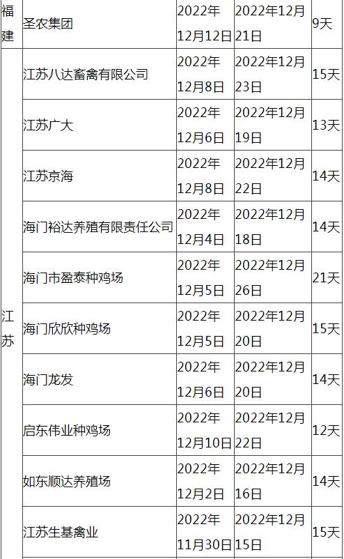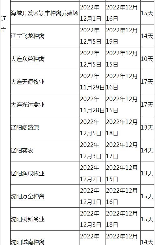 近期種蛋市場連續(xù)下滑至低位后穩(wěn)定,下滑的主要原因就是各種禽企業(yè)為了避開春節(jié)期間屠宰企業(yè)放假,因此個種禽企業(yè)根據各自計劃進行了種蛋的停孵,雞苗的停苗時間及避開春節(jié)之后的恢復出苗時間也相應進行了確定,本文就東北地區(qū)、河南、福建、江蘇市場76家種禽企業(yè)做了調研,進行了停苗期的統(tǒng)計:
