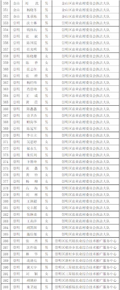 為進(jìn)一步做好本市官方獸醫(yī)(含漁業(yè)官方獸醫(yī))資格管理,加強(qiáng)隊(duì)伍建設(shè),根據(jù)《中華人民共和國(guó)動(dòng)物防疫法》《農(nóng)業(yè)部關(guān)于做好動(dòng)物衛(wèi)生監(jiān)督執(zhí)法人員官方獸醫(yī)資格確認(rèn)工作的通知》《農(nóng)業(yè)部辦公廳關(guān)于官方獸醫(yī)資格確認(rèn)條件的函》《農(nóng)業(yè)農(nóng)村部關(guān)于全面推進(jìn)實(shí)施水產(chǎn)苗種產(chǎn)地檢疫制度的通知》和《農(nóng)業(yè)農(nóng)村部辦公廳關(guān)于開(kāi)展動(dòng)物檢疫監(jiān)督能力提升行動(dòng)的通知》的要求,我委組織開(kāi)展了2022年度本市官方獸醫(yī)資格確認(rèn)工作。經(jīng)單位填報(bào)、區(qū)級(jí)復(fù)核、我委審查,擬確認(rèn)以下565人具有官方獸醫(yī)資格,現(xiàn)公示如下: