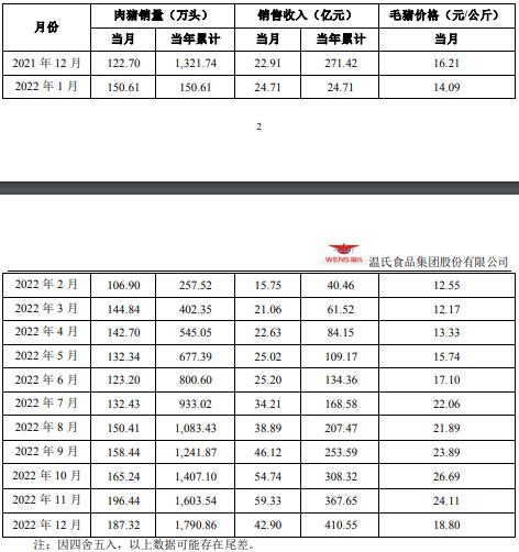 1、2022年12月和2022年度,公司肉豬銷量同比上升,主要是公司投苗增加和生產(chǎn)成績提高所致。