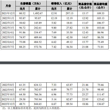 在豬價(jià)大幅下滑的2022年12月,正邦科技銷售均價(jià)也環(huán)比出現(xiàn)大幅下降。