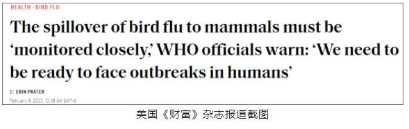 美國(guó)智庫(kù)克羅爾研究所首席醫(yī)學(xué)顧問(wèn)瓦爾馬(Jay Varma)告訴《財(cái)富》雜志,盡管以前發(fā)生過(guò)哺乳動(dòng)物感染H5N1型病毒的事情,但數(shù)量從未如此之多。他進(jìn)一步警告稱,因?yàn)閳?bào)告和測(cè)試的有限性,最近發(fā)現(xiàn)的與H5N1有關(guān)的“大規(guī)模死亡事件”“可能只是冰山一角”。