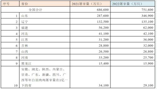 說(shuō)明:本統(tǒng)計(jì)延續(xù)了原白羽肉雞聯(lián)盟的統(tǒng)計(jì)方法。山東省以地級(jí)市為統(tǒng)計(jì)單位,其他以省為統(tǒng)計(jì)單位,每個(gè)省都由2名以上原聯(lián)盟成員單位負(fù)責(zé)統(tǒng)計(jì)。2022年被統(tǒng)計(jì)的屠宰場(chǎng)是202家,比2021年增加了9家。
