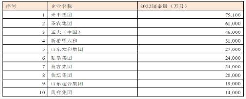 2022年企業(yè)屠宰量按集團(tuán)排名