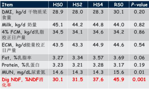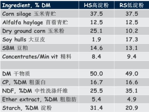 第一組使用高淀粉的日糧(HS0),第二組是高淀粉日糧+每天每頭牛兩克活酵母(HS2),第三組是高淀粉日糧+4克活酵母(HS4),這些高淀粉日糧都不含碳酸氫鈉。對(duì)照組使用低淀粉日糧,增加了碳酸氫鈉,確保奶牛的瘤胃健康,不會(huì)產(chǎn)生降解的效果,這樣可以進(jìn)行很好的對(duì)照試驗(yàn)。