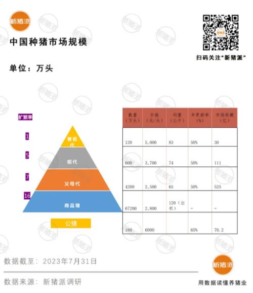 按照均價(jià)計(jì)算,曾祖代年更新率50%,市場(chǎng)規(guī)模為30億;祖代更新率50%,市場(chǎng)規(guī)模有111億,父母代更新率50%,市場(chǎng)規(guī)模高達(dá)525億。公豬的市場(chǎng)規(guī)模高達(dá)70億元。以上合計(jì)市場(chǎng)規(guī)模高達(dá)736億元。