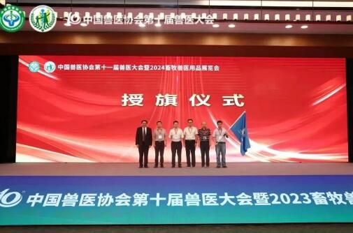 開幕儀式后,中國(guó)獸醫(yī)協(xié)會(huì)會(huì)長(zhǎng)陳煥春院士宣布第十一屆獸醫(yī)大會(huì)舉辦地點(diǎn)為武漢,并請(qǐng)湖北省農(nóng)業(yè)事業(yè)發(fā)展中心黨組成員易俊東副主任、湖北省動(dòng)物疫病預(yù)防控制中心謝軍主任、華中農(nóng)業(yè)大學(xué)動(dòng)科動(dòng)醫(yī)學(xué)院劉興斌書記、武漢科前生物股份有限公司副總經(jīng)理鐘鳴先生、金河佑本生物制品有限公司市場(chǎng)總監(jiān)郝進(jìn)龍先生上臺(tái)接獸醫(yī)大會(huì)會(huì)旗,易俊東副主任也代表第十一屆獸醫(yī)大會(huì)舉辦地發(fā)言。