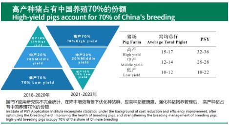 高產(chǎn)母豬是指窩均產(chǎn)總仔數(shù)在15-17頭,PSY在32-36的這一類母豬。2020以前我國高產(chǎn)母豬占比僅有10%的比例,據(jù)PSY應(yīng)用研究院不完全統(tǒng)計,在降本增效背景下優(yōu)化種豬群,提高種豬健康度,強(qiáng)化種豬飼養(yǎng)管理后,2021年以后高產(chǎn)種豬占有我國養(yǎng)殖70%的份額。
