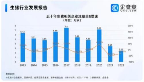 企查查數(shù)據(jù)顯示,我國現(xiàn)存生豬相關(guān)企業(yè)57.52萬家。近十年,我國生豬相關(guān)企業(yè)受豬肉價格波動、規(guī)?;訌姷扔绊懀粤砍试鰷p不定態(tài)勢。2020年,我國生豬相關(guān)企業(yè)新增7.23萬家,同比增長47.79%。2021年,我國生豬相關(guān)企業(yè)新增3.51萬家,同比減少51.41%。2022年,我國生豬相關(guān)企業(yè)新增2.52萬家,同比減少28.36%。截至目前,今年我國新增生豬相關(guān)企業(yè)1.97萬家,其中,2023年前10月,新增生豬相關(guān)企業(yè)1.9萬家,同比減少7.88%。從區(qū)域來看,山東現(xiàn)存5.43萬家生豬相關(guān)企業(yè),位居第一。河南、四川分別現(xiàn)存4.79萬家、4.31萬家生豬相關(guān)企業(yè),位居前三。此后是云南、湖北、安徽、河北等地。