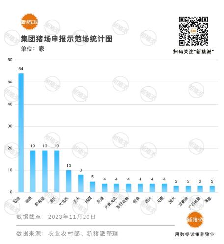2023年新增生豬示范場中,四川一省就達到兩位數(shù)12家,而集團豬場創(chuàng)建數(shù)量依然是牧原獨占鰲頭,年內(nèi)新增9家,總數(shù)累計54家。
