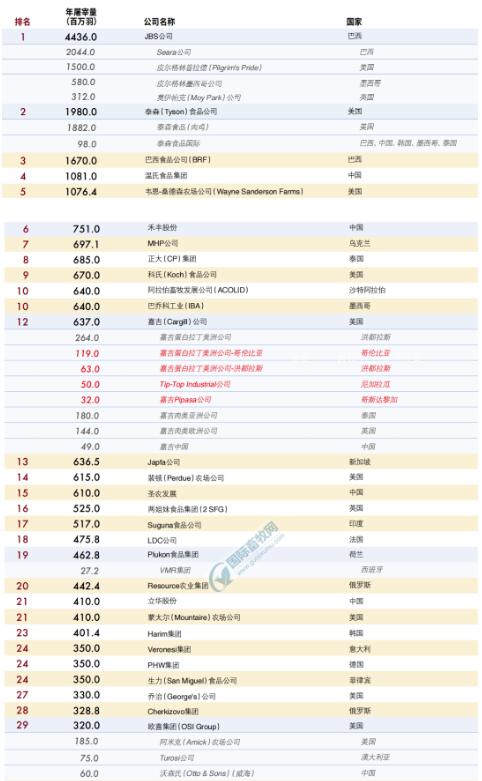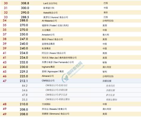 全球前50強(qiáng)肉雞生產(chǎn)商