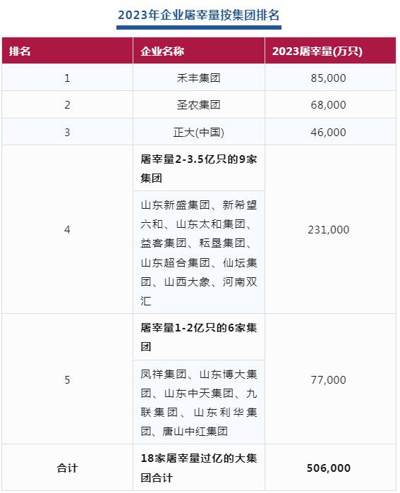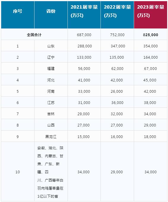 2023年度全國白羽肉雞屠宰量排名公布