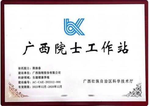近日,廣西壯族自治區(qū)公布2023年度第四批廣西院士工作站備案名單,揚(yáng)翔股份申報的“廣西揚(yáng)翔股份有限公司生豬健康養(yǎng)殖廣西院士工作站”順利通過2023年度廣西壯族自治區(qū)院士工作站備案。