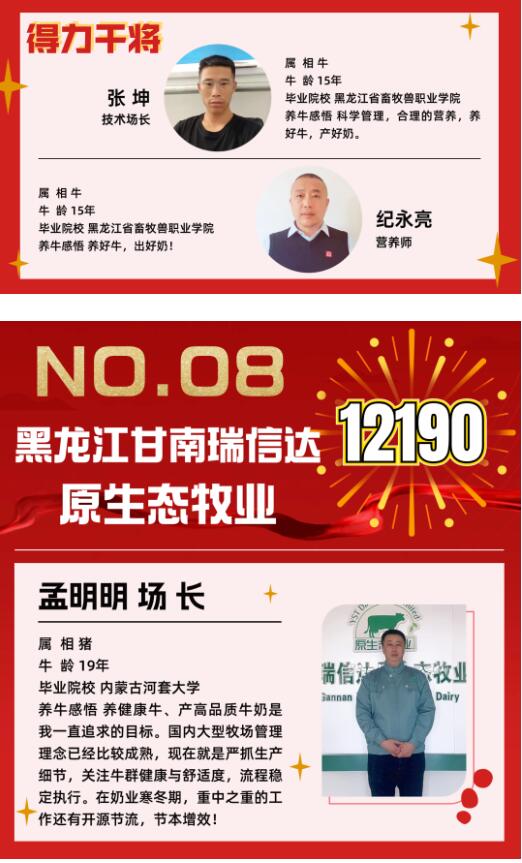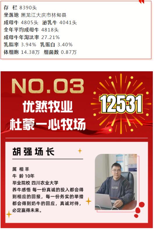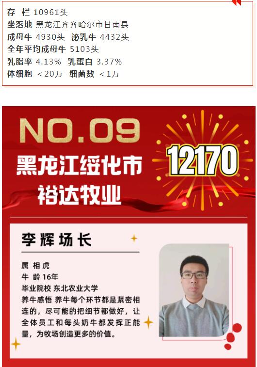 東北地區(qū)13家入圍牧場分布在黑龍江省,主要來自黑龍江農(nóng)墾、優(yōu)然牧業(yè)、現(xiàn)代牧業(yè)、原生態(tài)牧業(yè)等集團牧場,也有部分社會牧場,如綏化裕達牧業(yè)等。