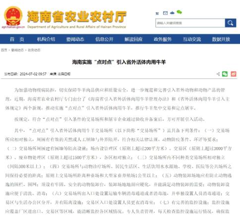 經(jīng)海南各市縣農(nóng)業(yè)農(nóng)村主管部門審核公布的牛羊交易場所、屠宰企業(yè),通過海南牧運通系統(tǒng)向所在地市縣農(nóng)業(yè)農(nóng)村主管部門申請“點對點”引入備案。市縣農(nóng)業(yè)農(nóng)村主管部門通過核查交易場所、屠宰企業(yè)相關資質(zhì)材料和實地勘查等方式開展審核,結合防疫條件、場地面積、實際產(chǎn)能等條件確定引入牛羊數(shù)量,每月將備案信息報送海南省動物衛(wèi)生監(jiān)督所。