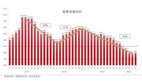 今年3月份最新版的生豬產(chǎn)能調(diào)控實(shí)施方案出臺(tái),全國(guó)能繁母豬存欄量的正常保有量,從2021年的4,100萬(wàn)頭調(diào)減到了3,900萬(wàn)頭,并說(shuō)明綠色合理區(qū)間是3900萬(wàn)頭正常保有量的92%-105%,即3588-4095萬(wàn)頭。近期公布的今年5月份的全國(guó)能繁母豬存欄量3,996萬(wàn)頭,這是處在一個(gè)綠色合理區(qū)間。從業(yè)人員都能夠獲取到這樣的一些信息,調(diào)整產(chǎn)能目標(biāo)和方向就更明確了。