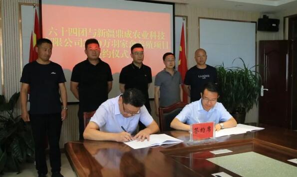 7月24日,六十四團(tuán)與新疆鼎成農(nóng)業(yè)科技有限公司2000萬羽家禽養(yǎng)殖項(xiàng)目簽約儀式在該團(tuán)機(jī)關(guān)三樓會(huì)議室舉行。該團(tuán)黨委書記、政委鄒藝海、黨委常委、副團(tuán)長(zhǎng)譚仕勇、新疆鼎成農(nóng)業(yè)科技有限公司負(fù)責(zé)人參加簽約儀式。