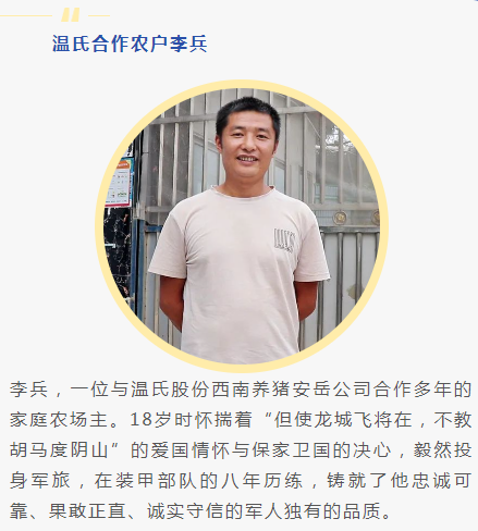 李兵與溫氏合作至今,已成功上市多批豬,料比成績、上市率、上市均重等各項指標都十分出色。“合作這么多年,掙錢固然是一方面,溫氏公司的服務員真心讓我佩服,從安岳趕來,一來一回,200多公里,基本上我需要他們的時候一打電話服務員隨叫隨到趕往現(xiàn)場,他們真的是非常辛苦。”李兵認為,自己從一無所知的新手,迅速成長為經(jīng)驗豐富的熟手離不開溫氏農(nóng)戶服務員的指導。“除了農(nóng)場飼養(yǎng)員踏踏實實地干工作外,這么大的場子能有這般成績,離不開溫氏公司的精誠合作,感謝熱情服務的服務員們?!?br>