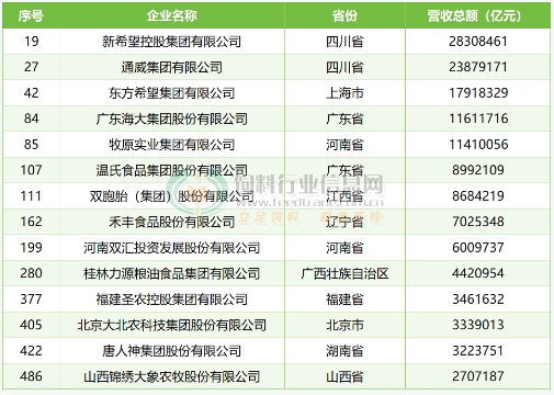 其中,新希望、通威集團(tuán)、東方希望、海大集團(tuán)、牧原集團(tuán)、溫氏食品、雙胞胎、禾豐食品、雙匯發(fā)展、桂林力源、福建圣農(nóng)、大北農(nóng)、唐人神、大象農(nóng)牧等14家農(nóng)牧及農(nóng)牧板塊業(yè)務(wù)有較大影響力的企業(yè)上榜,營(yíng)收總額約1.5361萬(wàn)億元。